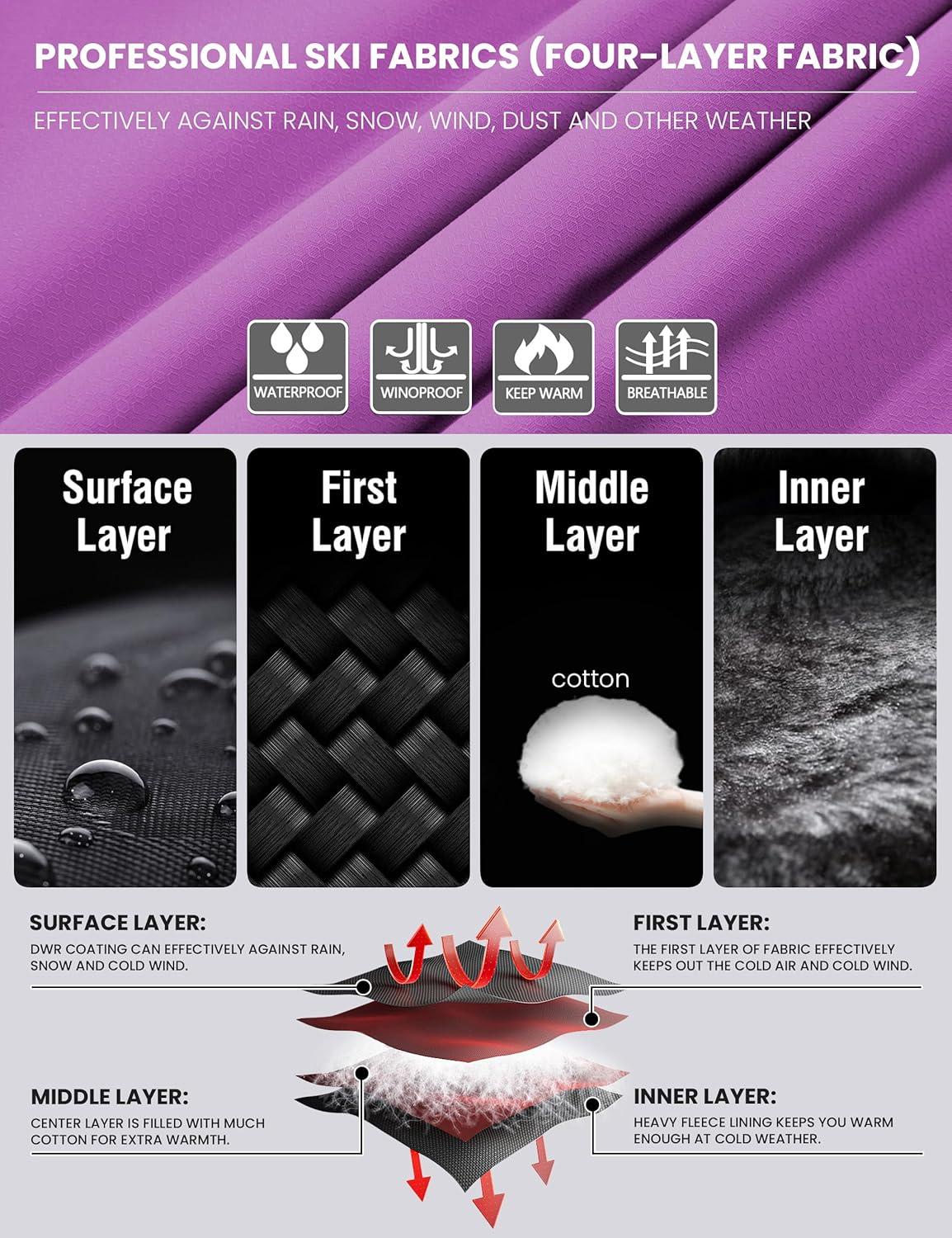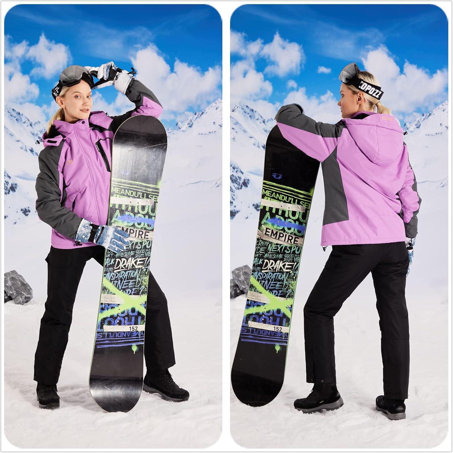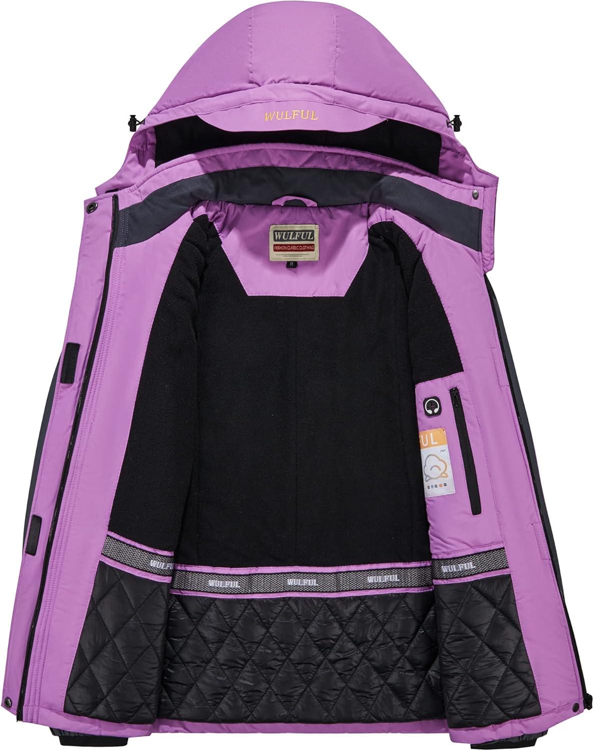 WULFUL Women’s Waterproof Snow Ski Jacket Mountain Windproof Winter Coat with Detachable Hood(Light Purple&black)