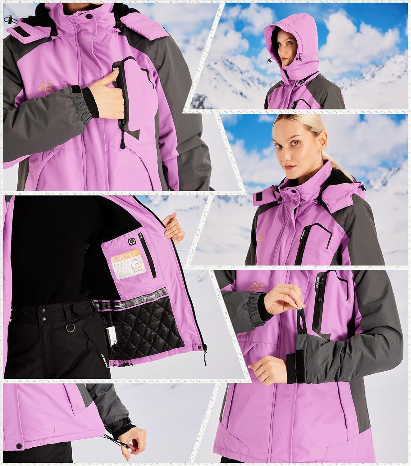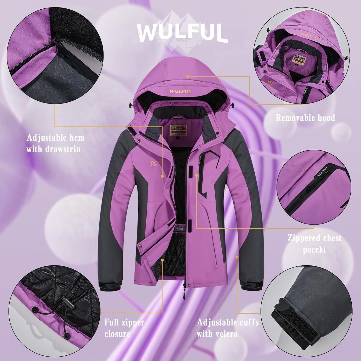 imageWULFUL Womens Waterproof Snow Ski Jacket Mountain Windproof Winter Coat with Detachable HoodLight Purpleblack