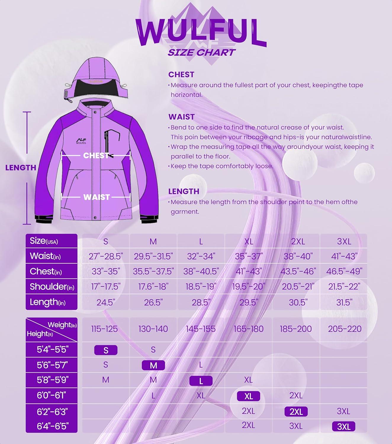 Be the first to review “WULFUL Women’s Waterproof Snow Ski Jacket Mountain Windproof Winter Coat with Detachable Hood(Light Purple&black)”