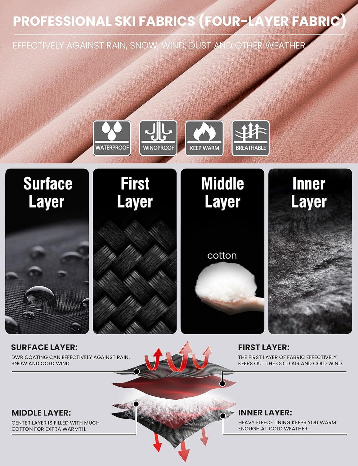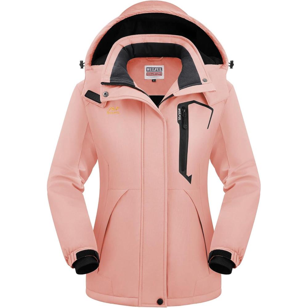 WULFUL Women’s Waterproof Snow Ski Jacket Mountain Windproof Winter Coat with Detachable Hood(Pink New)