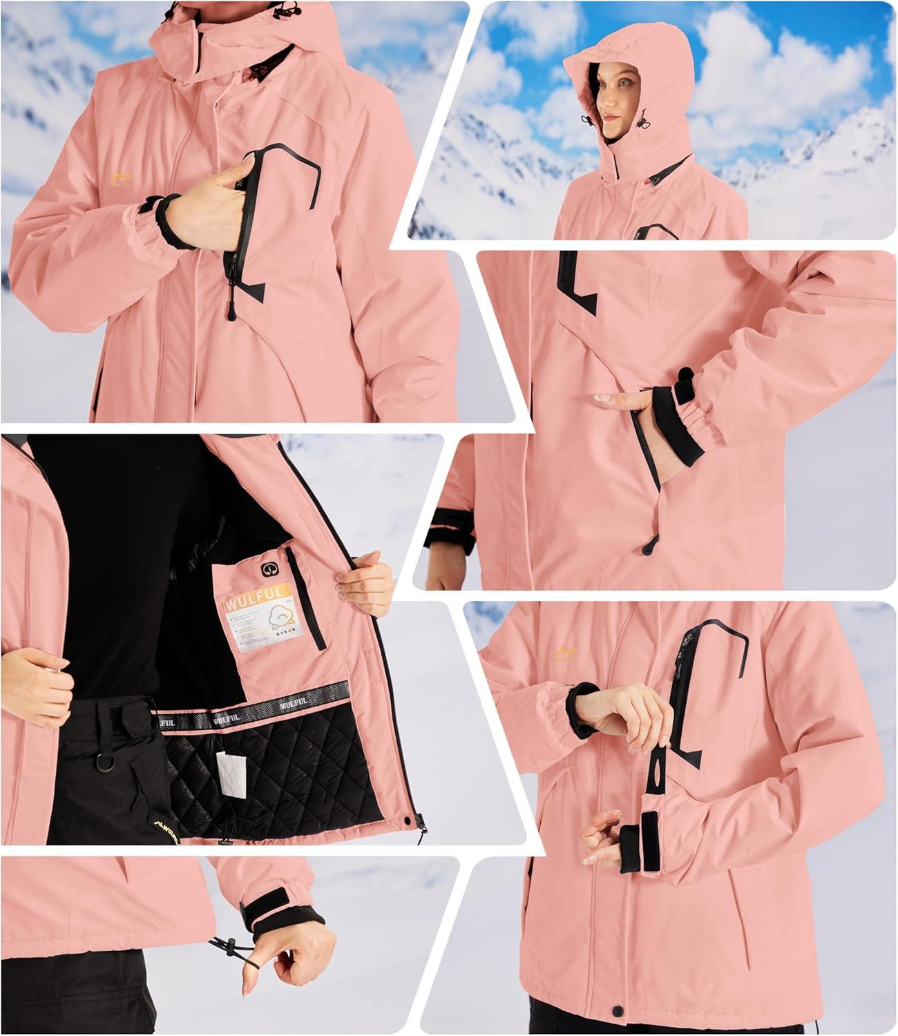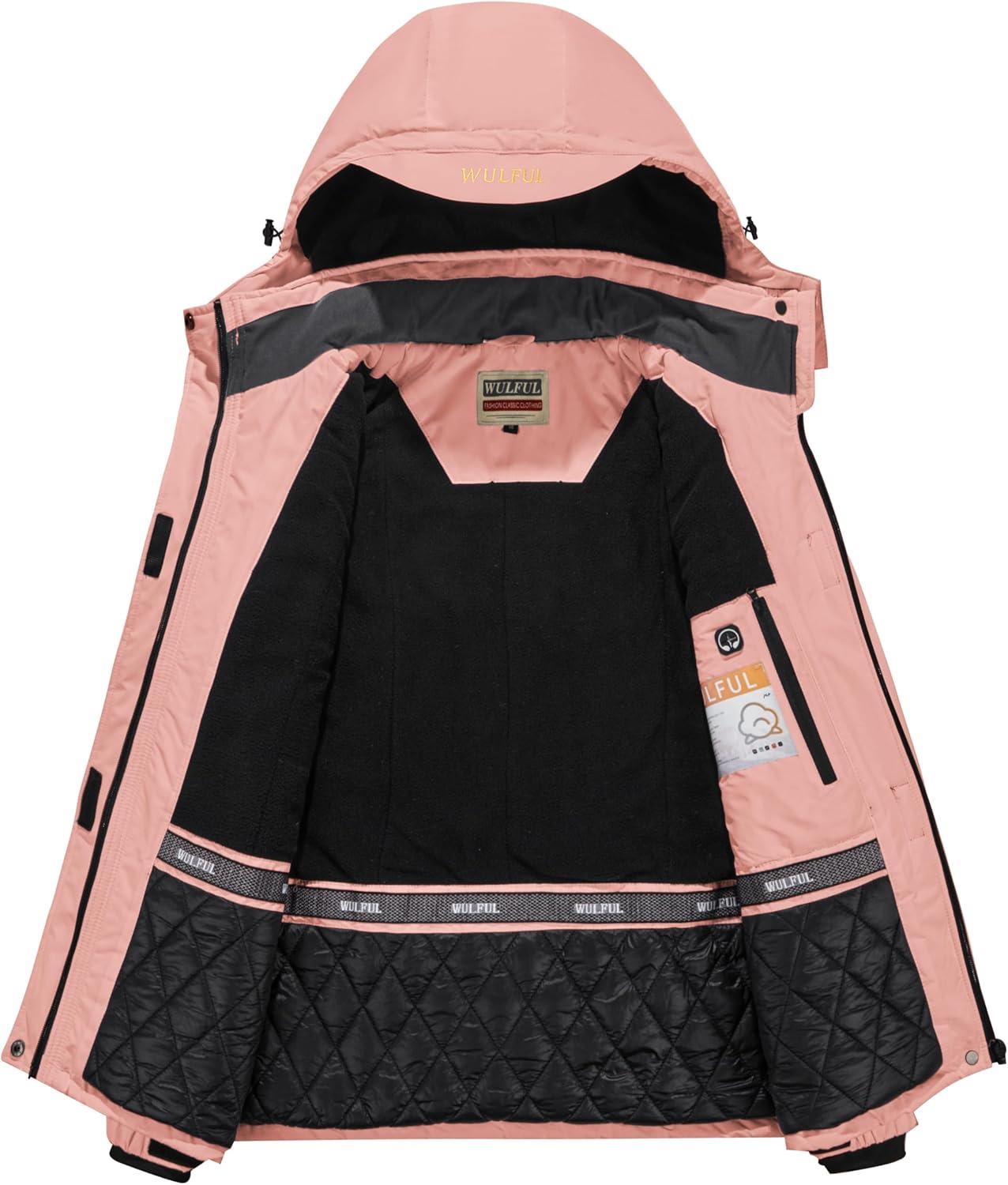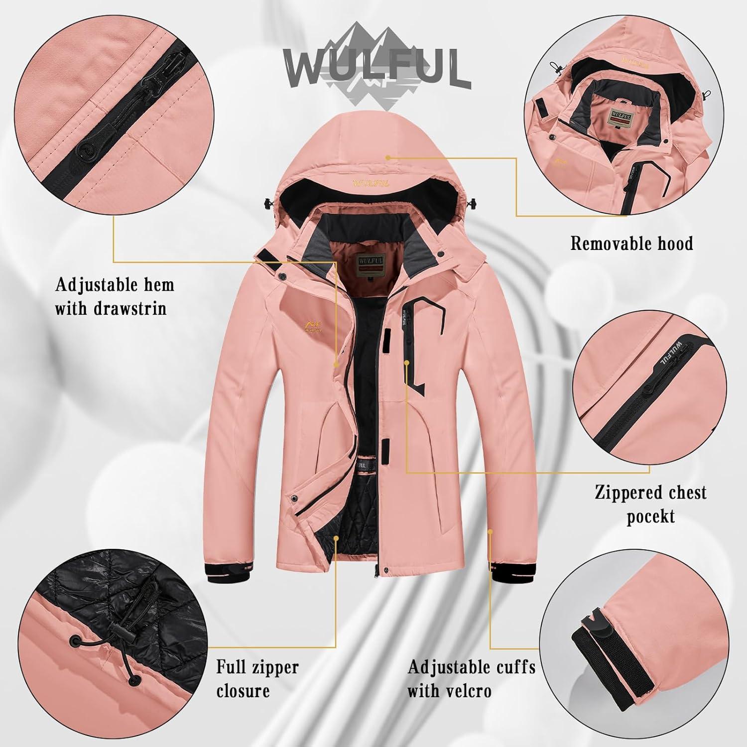 imageWULFUL Womens Waterproof Snow Ski Jacket Mountain Windproof Winter Coat with Detachable HoodPink New