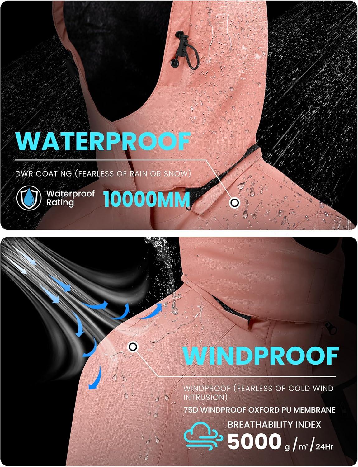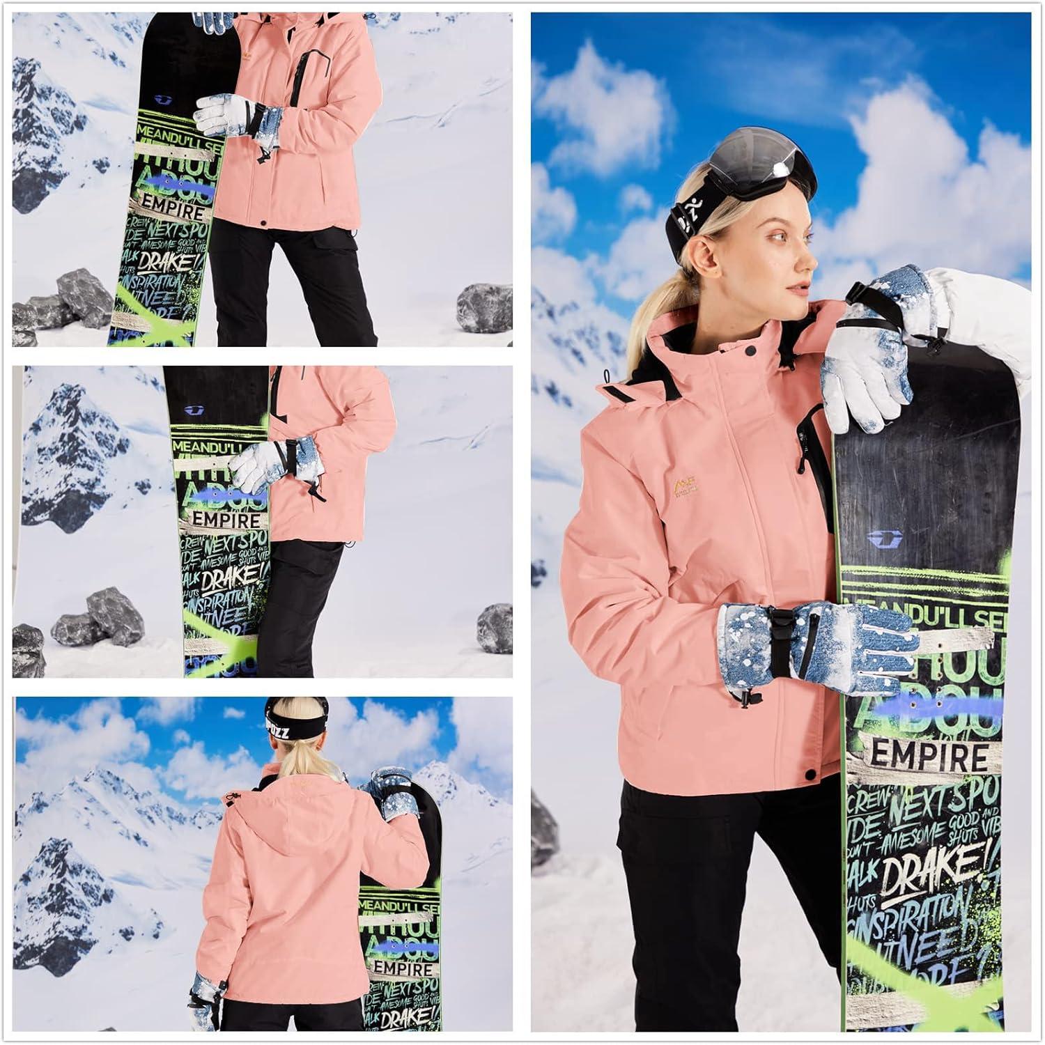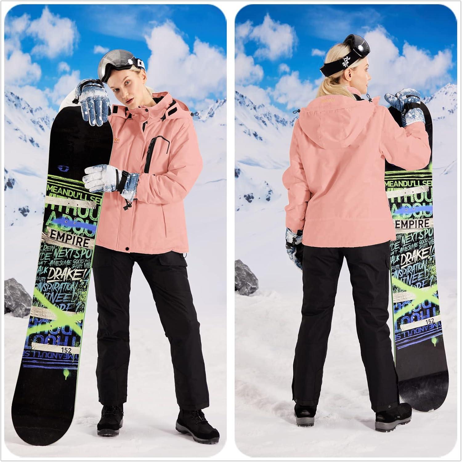 imageWULFUL Womens Waterproof Snow Ski Jacket Mountain Windproof Winter Coat with Detachable HoodPink New
