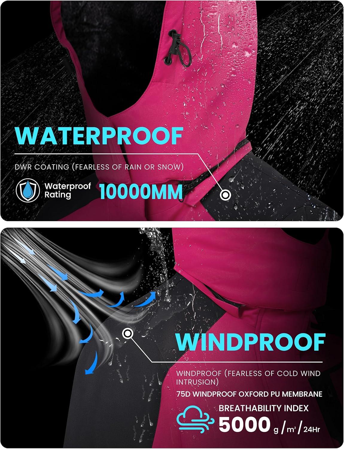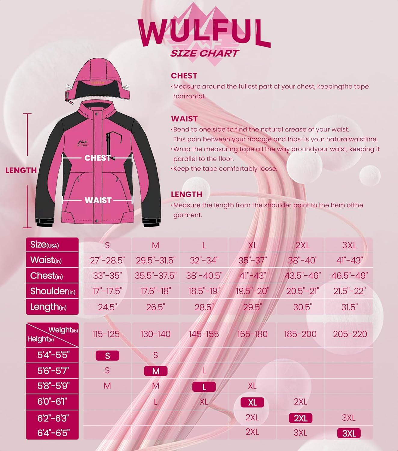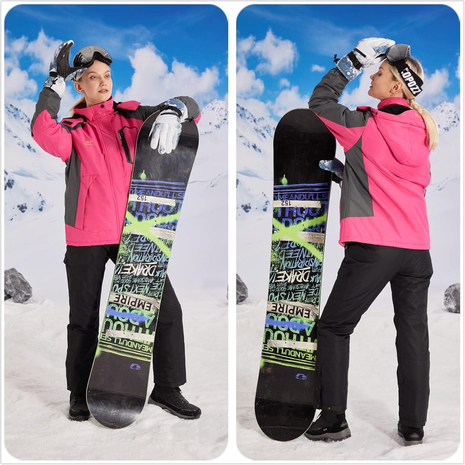 WULFUL Women’s Waterproof Snow Ski Jacket Mountain Windproof Winter Coat with Detachable Hood(Rose&black)