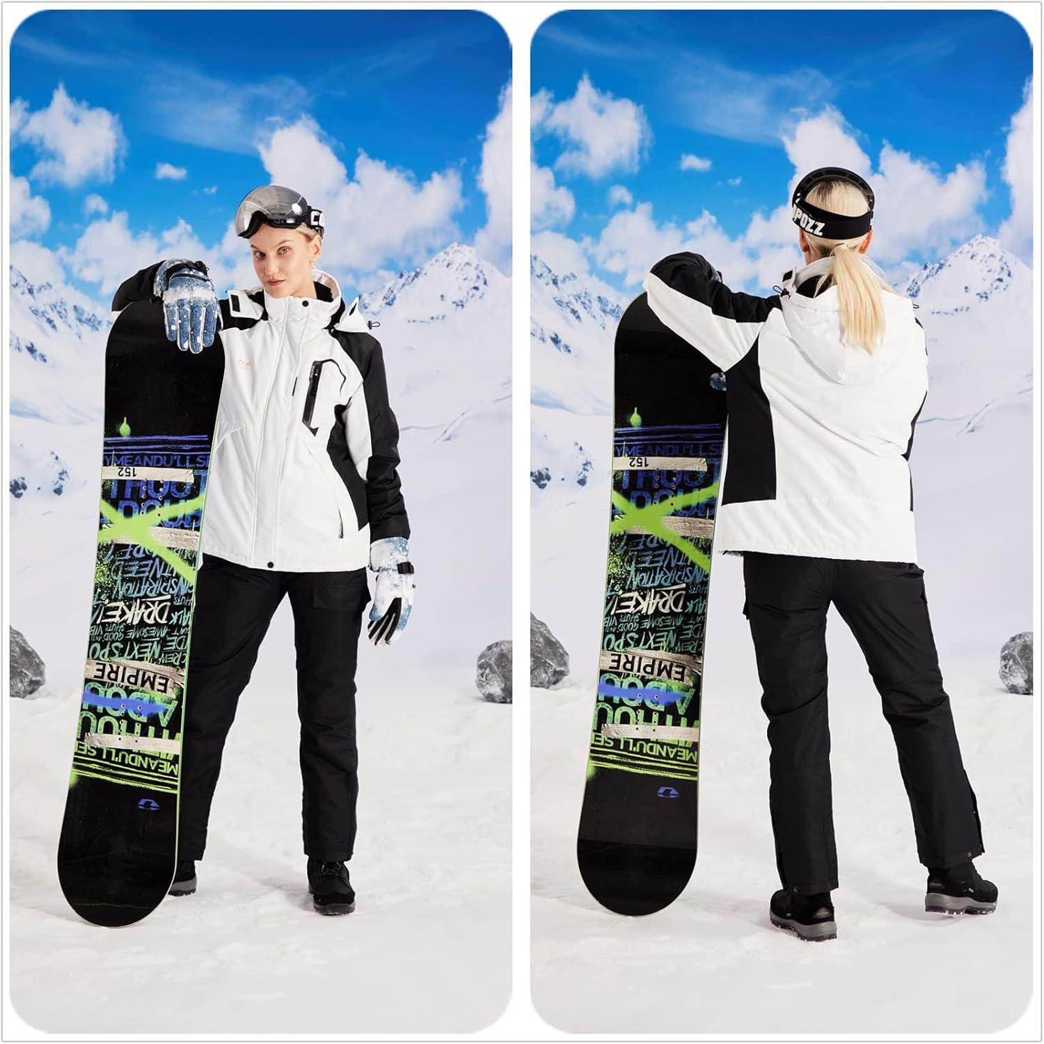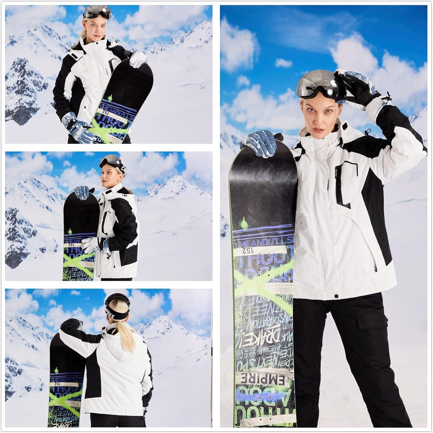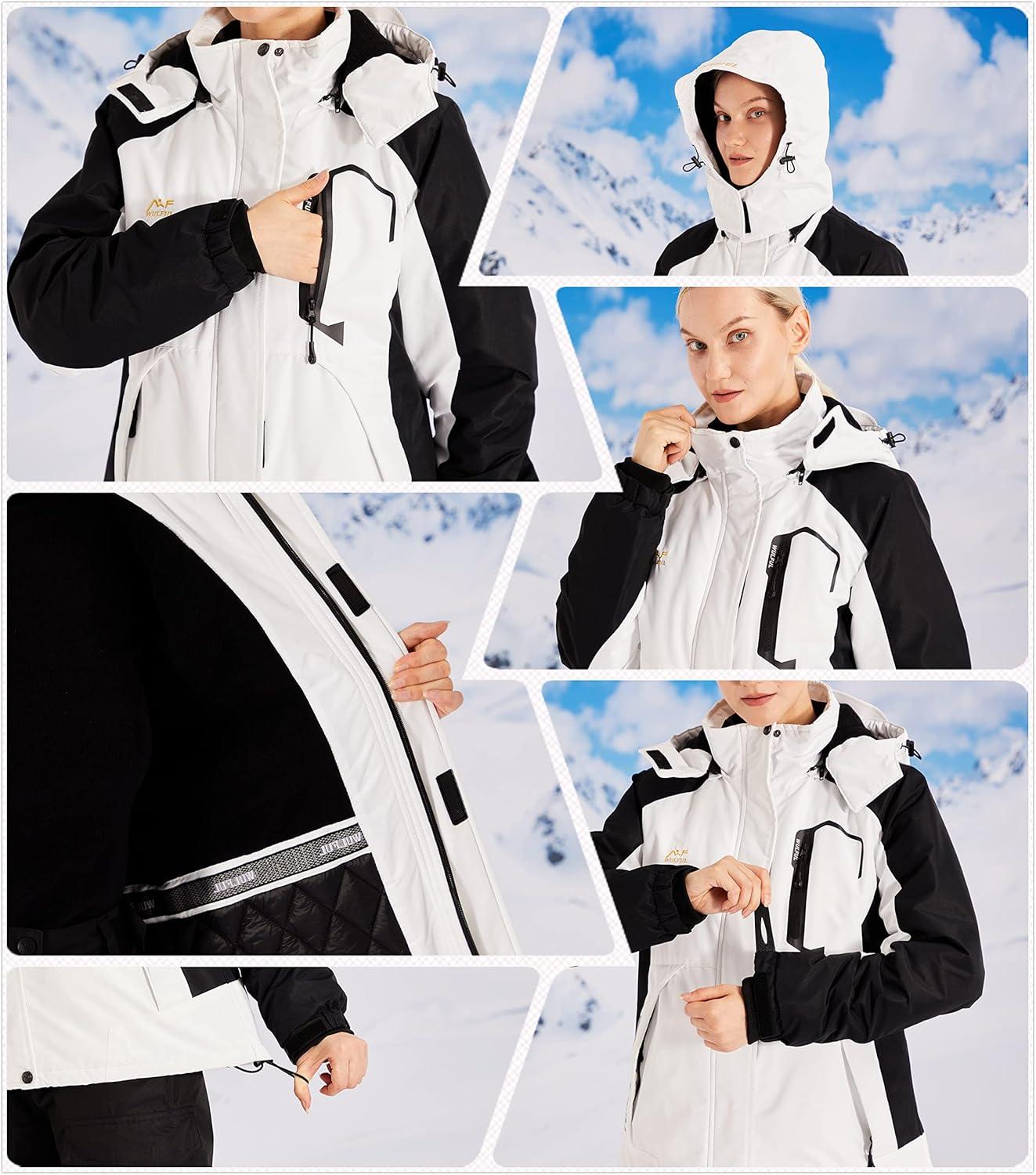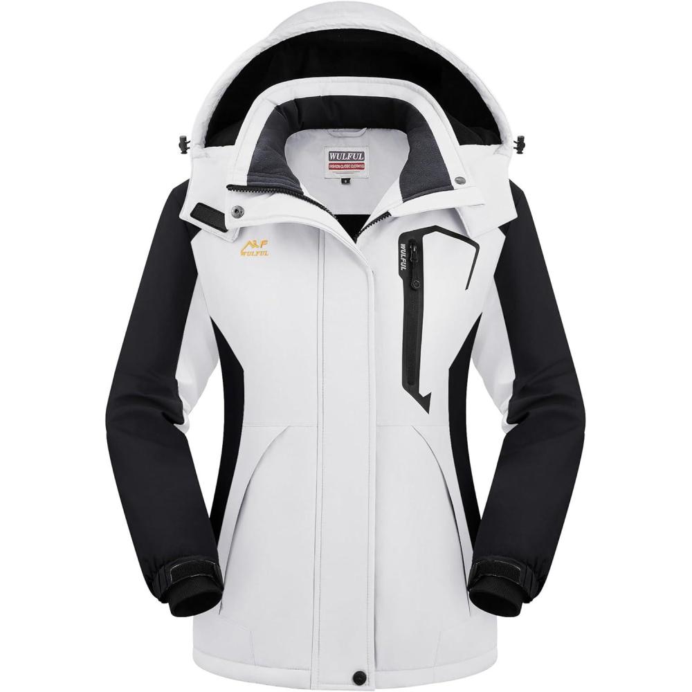 WULFUL Women’s Waterproof Snow Ski Jacket Mountain Windproof Winter Coat with Detachable Hood(White&black)