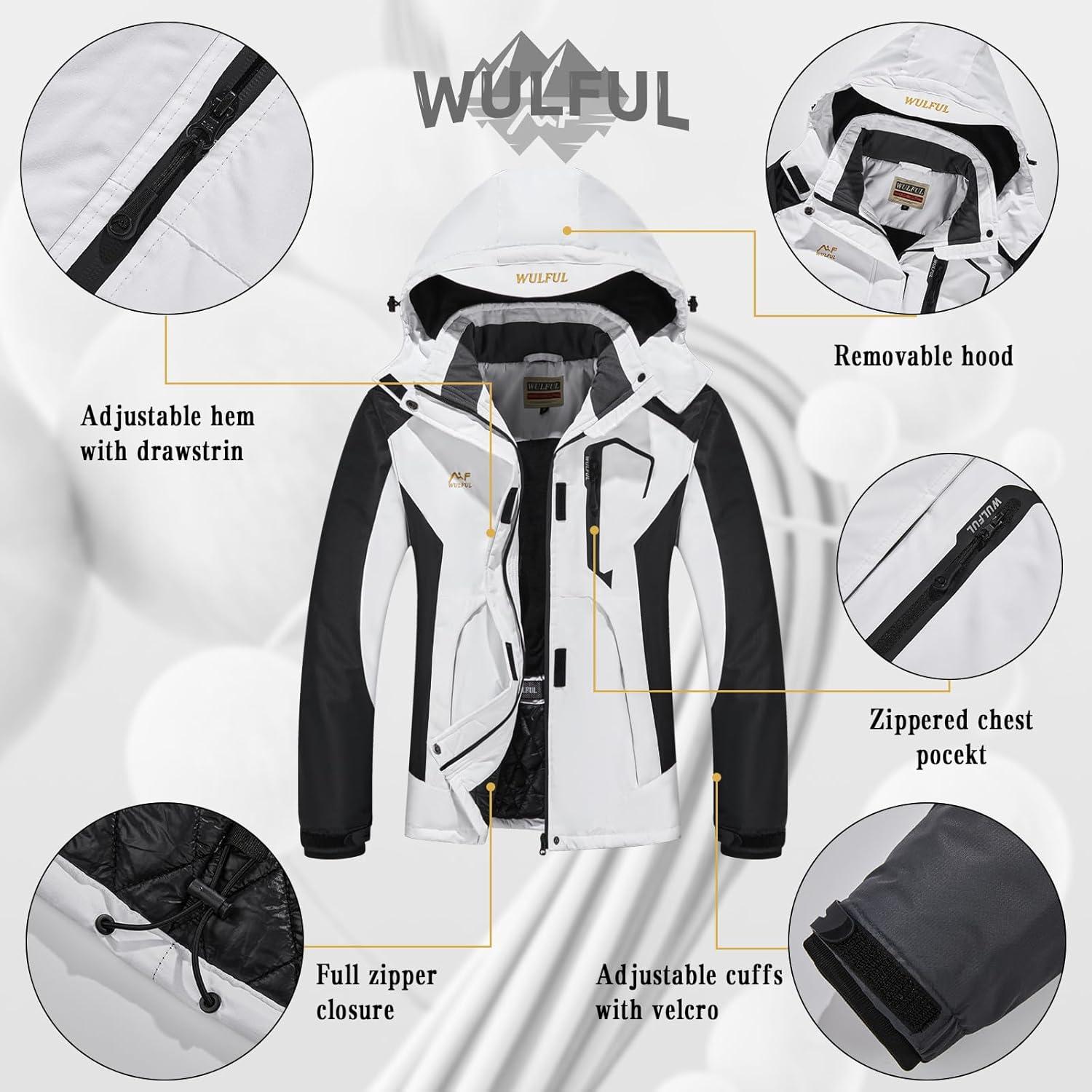 Be the first to review “WULFUL Women’s Waterproof Snow Ski Jacket Mountain Windproof Winter Coat with Detachable Hood(White&black)”