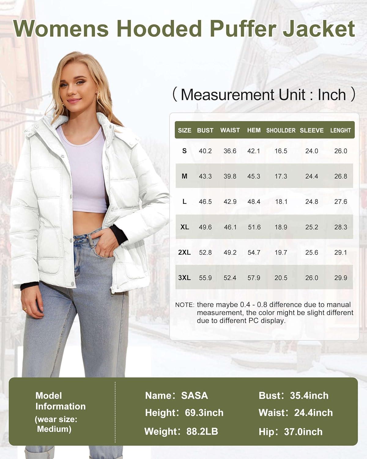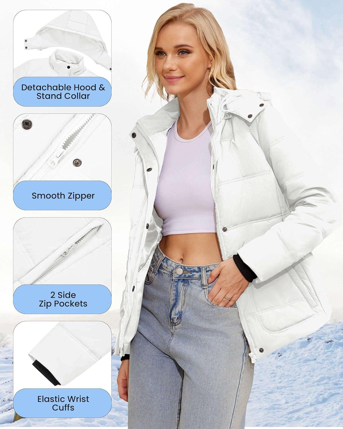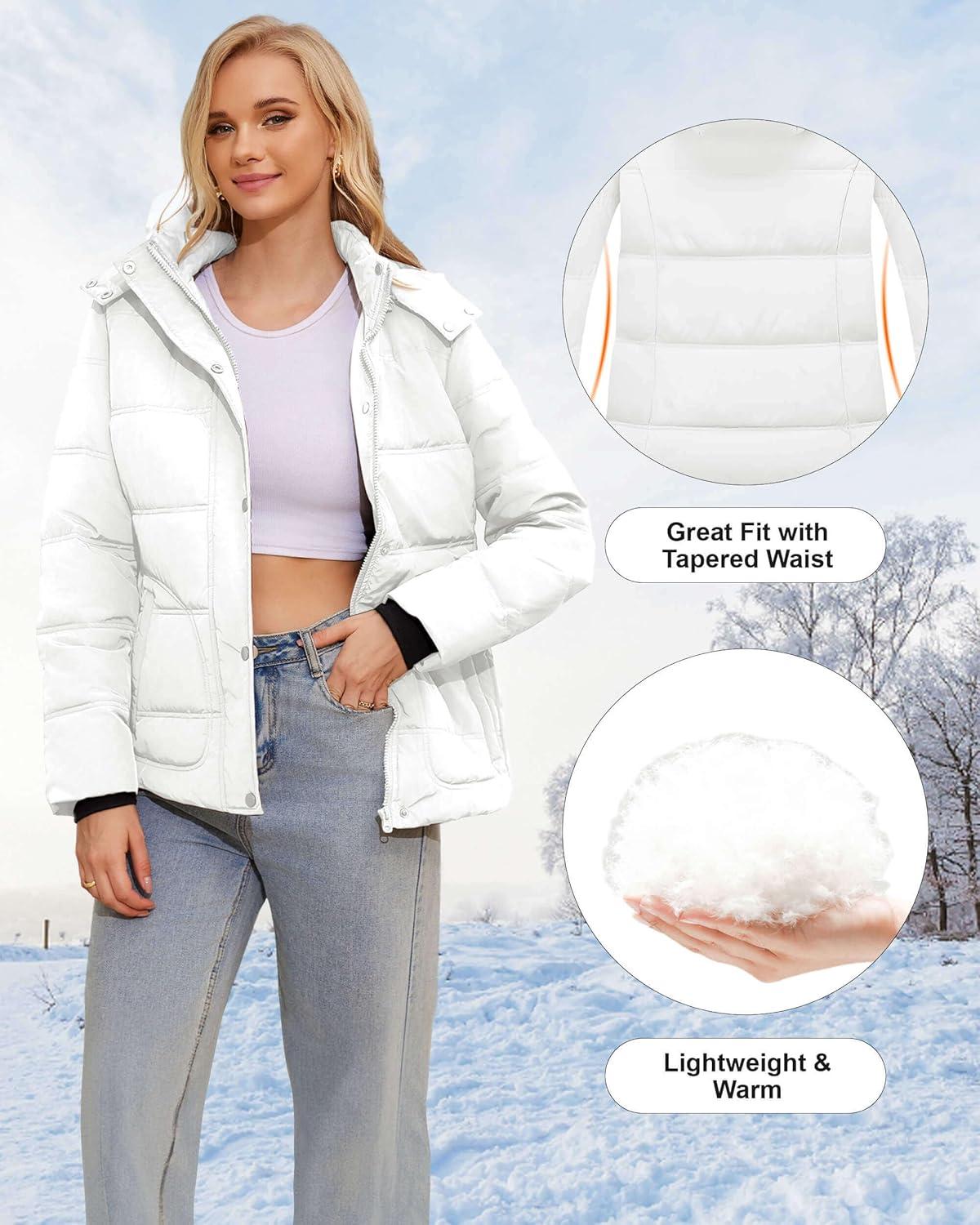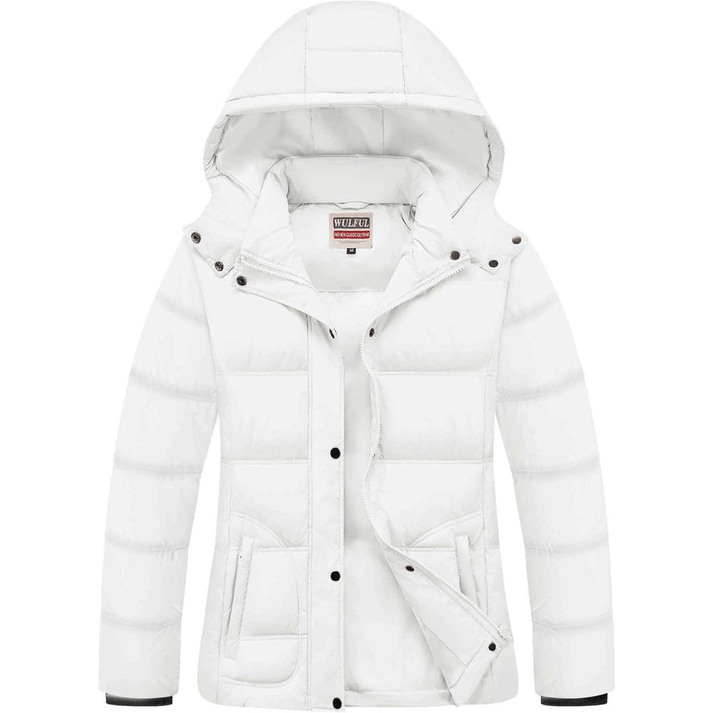 WULFUL Women's Winter Coats Lightweight Warm Thicken Puffer Jacket Waterproof Quilted Winter Jackets with Removable Hood(White)