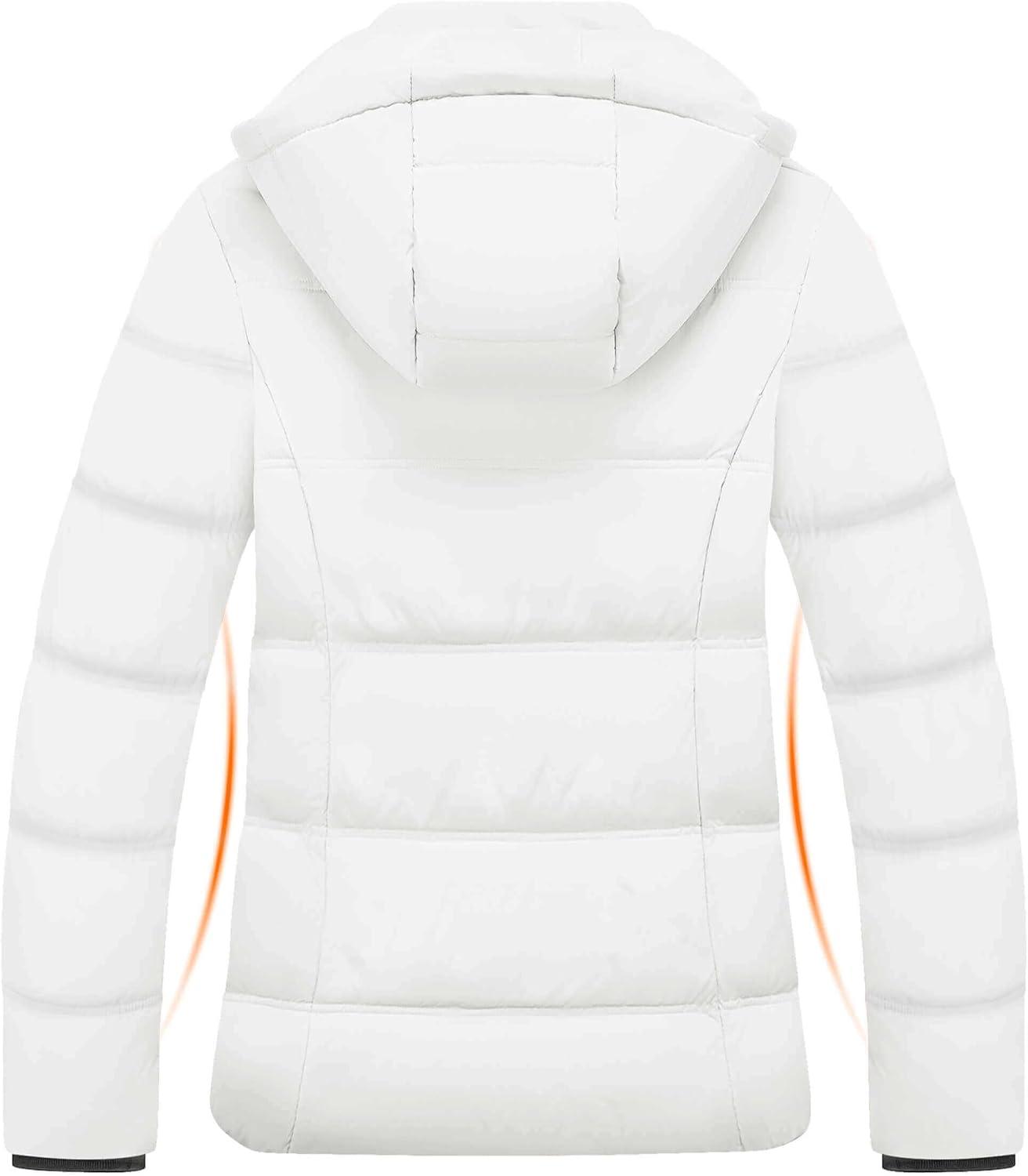 WULFUL Women’s Winter Coats Lightweight Warm Thicken Puffer Jacket Waterproof Quilted Winter Jackets with Removable Hood(White)