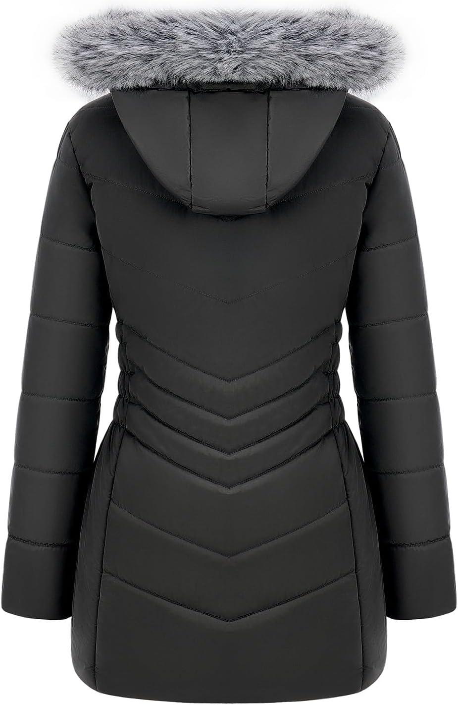 WULFUL Women’s Winter Coats Long Warm Thicken Puffer Jackets Outwear With Removable Fur Hood(Dark Grey)